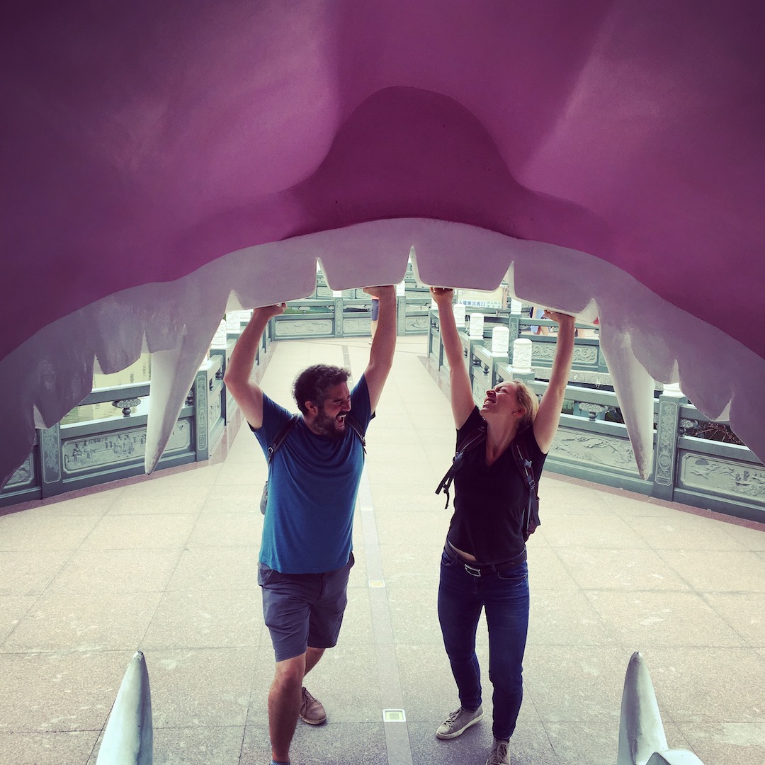 Neither Hanna, nor Michel had been to Asia before and witnessing their first impressions was a real joy – especially since we’ve been on the road for so long, we don’t even notice some of these things anymore. Crazy cab drivers, the best dumpling house in Taipei according to Tripadvisor (which, ironically turned out to be Din Tai Fung, whose Los Angeles branch we’d been to several times), crowded night markets and stinky tofu. Adam dared Michel to fish for live shrimp and they bravely tried their grilled catch; Hanna and I happily sipped on Papaya milk and tried to find the tackiest ring for her to wear instead of her engagement ring, which she had left at home for fear of losing it. We learned that if it is Mango, Michel will eat it (shaved ice, dried, smoothie, freshly cut – you name it!)